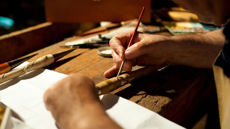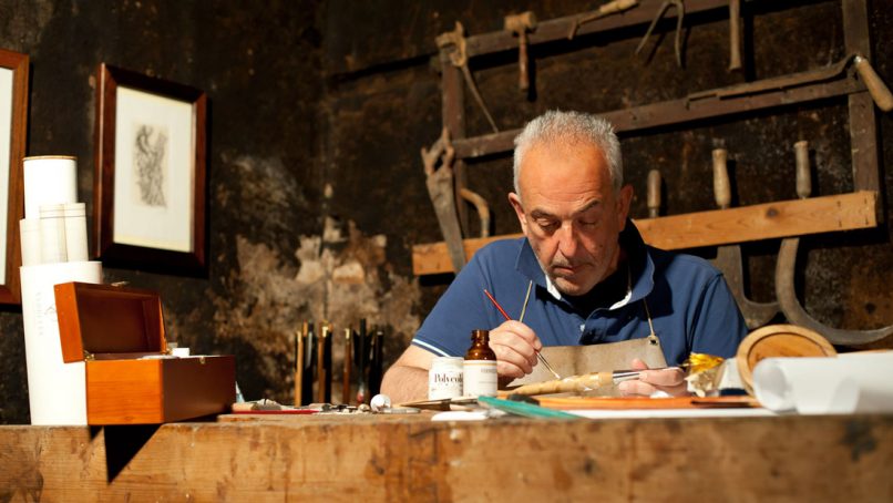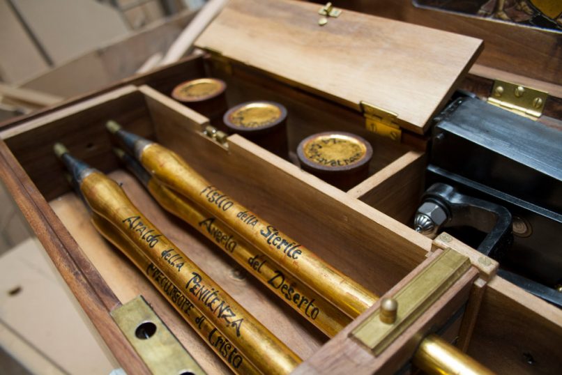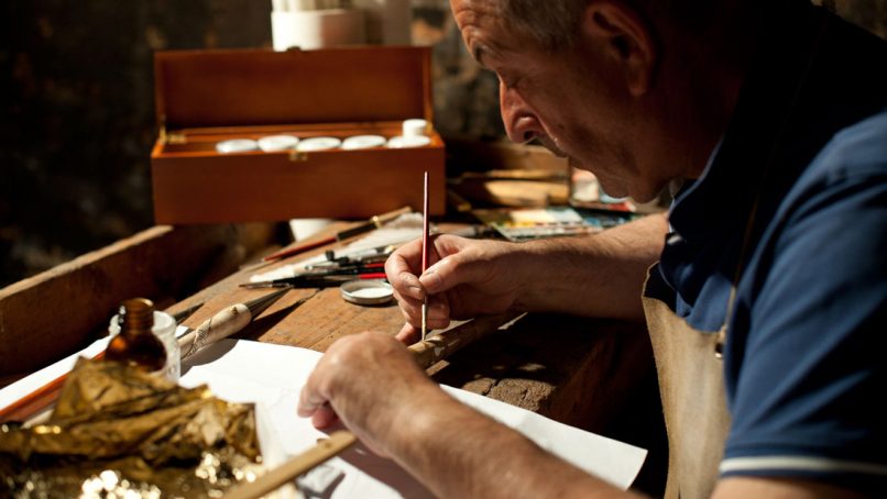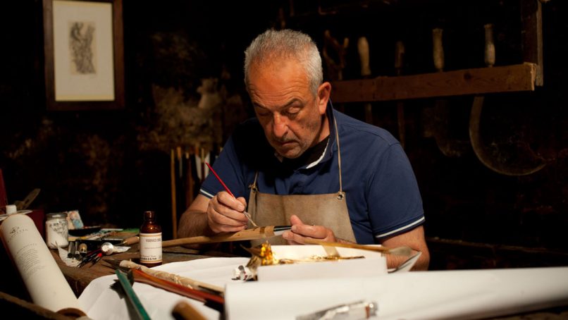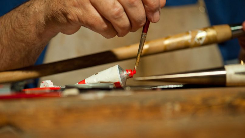 pittura delle balestre e delle verrette del maestro artigiano Dell’Omarino